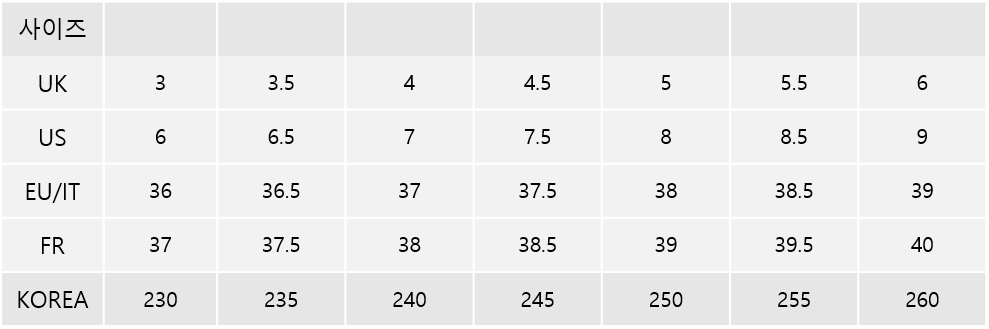 슈즈는 일반 제품과 주문 및 배송기간이 다릅니다.